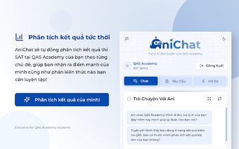 AniChat, test sonuçlarını anında analiz ederek, hangi konulara daha fazla odaklanılması gerektiğini belirler. Ayrıca, öğrencilerin çalışma sürecini kolaylaştırmak için uygun çalışma materyalleri önerir. Karanlık mod desteği ile gece çalışırken göz yorgunluğunu azaltır. AniChat, QAS Academy öğrencileri için etkili bir öğrenme deneyimi sunarak, SAT sınavına hazırlığı daha akıllı hale getirir.